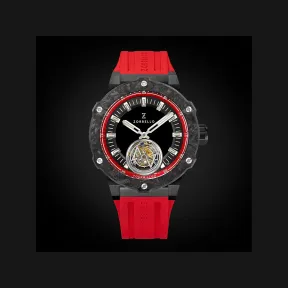 T2 Tourbillon系列延续首个系列“点亮黑暗”的主题,稍加扭转,展现其时尚优雅之美。从材质的选择到尺寸和表壳的形状、曲线、颜色组合,当然还有饰面,每一个细节都经过精心设计,以实现美学、个性和功能的完美平衡。直径 45 毫米,不锈钢表壳顶部是发光的锻造碳表圈和蓝宝石水晶。底盖采用相同的材​​料。每一块的夜光图案都不同,因此每块手表都独一无二。陀飞轮机械机芯以 3Hz 运行,拥有 31 颗宝石,45 小时动力储存,其转子饰有日内瓦波纹,可通过展览蓝宝石底盖欣赏。T2 系列结合了 Super-LumiNova® 与自供电顶部分级氚照明技术,比普通氚气管亮 30%,并保证长达 25 年的终极夜视。表盘上的标志性 Zorbello 陀飞轮框架、徽标和内圈均涂有 Super-LumiNova® 夜光涂层,而微氚气管则应用于指针和时标。 T2系列提供五种耀眼的色彩变化,搭配橡胶表带,搭配推扣式蝴蝶扣,佩戴舒适轻松。防水深度为 100 米。