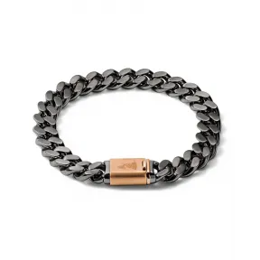 时尚、现代的不锈钢链环手链,以玫瑰金色定制设计的表扣和标志性 Bulova 音叉形状的舌头为特色。表扣的拉丝表面还巧妙地印有拉丁 GRAMMY® 标志。