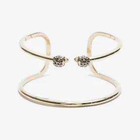 浅金黄铜双排手链,两颗骷髅头饰有施华洛世奇水晶。