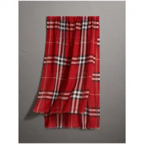 博百利/Burberry 女士 轻盈格纹丝毛混纺围巾 (缤纷红色格纹) 39546201 的视频