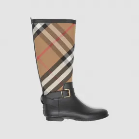 博百利/Burberry 女士 束带装饰格纹拼橡胶雨靴 (House格纹/黑色) 40383511 的视频