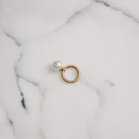 博百利/Burberry 女士 人造珍珠吊饰镀金戒指 (浅金色 / 白色) 40765971