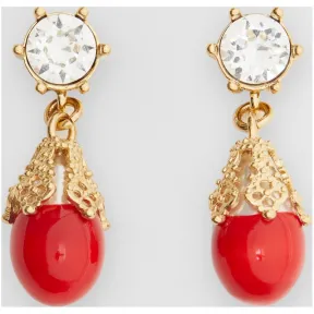 博百利/Burberry 女士 镀金人造珍珠吊饰耳环 (亮红色 / 浅金色) 80129751 的视频