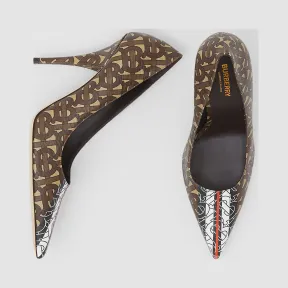 博百利/Burberry 女士 专属标识条纹环保帆布高跟鞋 (马鞍棕) 80187521 的视频