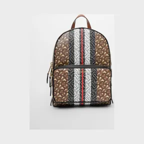 博百利/Burberry 女士 专属标识条纹印花环保帆布双肩包 (马鞍棕) 80193461 的视频