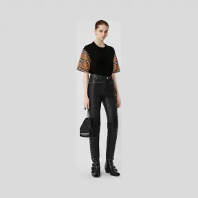 博百利/Burberry 女士 Vintage 格纹装饰棉质 T 恤衫 (黑色) 80148951 的视频