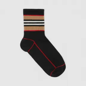 博百利/Burberry 女士 标志性条纹嵌花棉质混纺及踝袜 (黑色) 80156361 的视频
