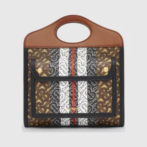 博百利/Burberry 迷你专属标识条纹环保帆布口袋包 (马勒棕) - 女士 80193651 的视频