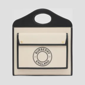 博百利/Burberry 中号徽标图案帆布拼皮革口袋包 (黑色 / 白色) - 女士 80280411 的视频