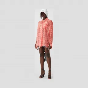 博百利/Burberry 小方格丝质雪纺系带上衣 (红色) - 女士 45645091 的视频
