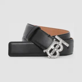 博百利/Burberry 人造水晶专属标识图案皮革腰带 (黑色 / 钯金色) - 女士 80234341 的视频