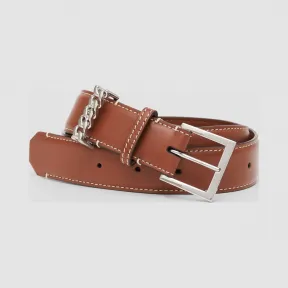 博百利/Burberry 链饰缉明线皮革腰带 (棕褐色 / 淡褐色) - 女士 80289631 的视频