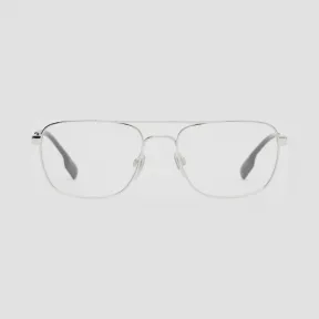 银色领航员光学镜框,灵感源于 Burberry 探险精神,镜腿端饰以黑色板材细节。 光学镜框随附的镜片仅作演示用途,必须在使用前更换。请在购买前与您的配镜师进行确认,确保镜框符合您的配镜度数要求或替换镜片规格。一旦完成配镜或安装替换镜片,光学镜框不可退换货。 镜框宽度:13.8cm|镜框高度:4.2cm|金属拼醋酸纤维镜框|镜腿镌刻 Burberry 字母徽标|意大利制|随附硬质皮革眼镜盒与擦拭布