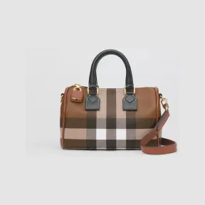 博百利/Burberry 迷你格纹拼皮革保龄球包 (深桦木棕) - 女士 80534961 的视频