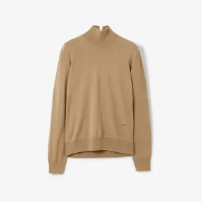 博百利/Burberry 专属标识装饰羊毛混纺高领针织衫 (驼色) 80584131 的视频