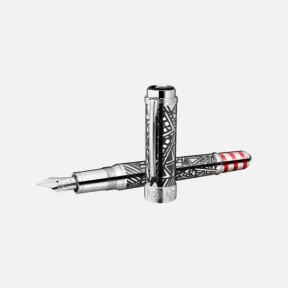 佩吉·古根海姆 (Peggy Guggenheim) 是美国最具影响力的当代艺术收藏家和参展商之一。萨尔瓦多·达利、巴勃罗·毕加索、杰克逊·波洛克等众多年轻艺术家,其作品佩吉·古根海姆在欧美展出,都归功于她早期的成功。笔夹和笔帽的线性设计,以及镀铂笔帽和笔杆中黑漆镶嵌的线条和形状,均受到她收藏的装饰艺术作品的启发。锥体上的红漆镶嵌螺旋代表威尼斯水道内衬的条纹系泊杆。帽环上浮雕的狮头指的是佩吉·古根海姆的威尼斯宫殿、威尼斯宫 (Palazzo Venier dei Leoni),以及威尼斯的象征圣马克的狮子。|特点||夹子描述铂金涂层|桶描述黑色漆桶,带铂金装饰艺术图案和锥形半透明红漆|笔帽描述黑色漆笔帽,带铂金艺术装饰图案,镶嵌万宝龙标志|颜色银色|书写模式||书写模式 钢笔 |笔尖 描述 笔尖设计带有狗爪,让人想起她心爱的 14 只拉萨阿普索狗,这些狗对她的一生都非常重要。Au 750 金笔尖,镀铑,特殊设计。|尺寸||尺寸 145 毫米 |尺寸 17 毫米 |重量 68 克 镶嵌万宝龙标志|银色|书写模式||书写模式钢笔|笔尖描述笔尖设计带有狗爪子,让人想起她心爱的14只拉萨阿普索狗,这些狗对她一生都非常重要。Au 750 金笔尖,镀铑,特殊设计。|尺寸||尺寸 145 毫米 |尺寸 17 毫米 |重量 68 克 镶嵌万宝龙标志|银色|书写模式||书写模式钢笔|笔尖描述笔尖设计带有狗爪子,让人想起她心爱的14只拉萨阿普索狗,这些狗对她一生都非常重要。Au 750 金笔尖,镀铑,特殊设计。|尺寸||尺寸 145 毫米 |尺寸 17 毫米 |重量 68 克