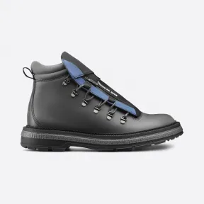 这款靴子由 Kim Jones 设计,诠释了经典实用的登山靴。采用光滑灰色牛皮革精心制作,新款鞋面采用黑色和蓝色的科技面料口袋装饰。徽标压花口袋采用鞋带固定,有一个采用翻盖开合的主隔层和一个外部拉链口袋。饰有浮雕图案的后侧徽标装饰拼接的橡胶凹凸鞋底顶部。这款个性鲜明的靴子搭配牛仔穿着彰显时尚风格。||灰色光滑牛皮革和科技面料鞋面系带鞋面黑色和蓝色科技面料拉链口袋搭配“Christian Dior”徽标印花皮革里料衬垫鞋垫双色拼接橡胶凹凸鞋底后侧为热压“Dior”徽标意大利制造此款鞋尺码偏大:我们建议您按比正常鞋码小半码的尺码选购。|