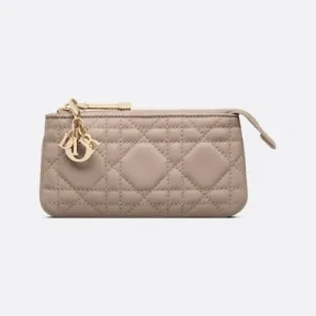 Lady Dior 拉链钥匙包设计精致实用。采用榛子色小羊皮制成,带有藤格纹缝线,可拆卸的“DIOR”挂饰更添魅力。配有可拆卸且坚固的按扣钩以及拉链封口,百搭款式展现曲线线条。它可以容纳钥匙和信用卡,并可与 Lady Dior 系列的其他单品搭配。可拆卸“DIOR”饰物|拉链开合|可拆卸钥匙扣|意大利制造|