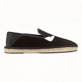 带折叠式鹿皮鞋跟的帆布鞋,可作为拖鞋穿。编绳和橡胶鞋底。黑色坯革材质。Bag Bugs眼睛形状撞色贴花和镀钯饰面金属件。罗缎缎带饰面和同色调缝线。意大利制造