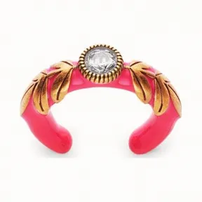 紫红色上釉金属戒指。Julius Caesar饰有复古金色饰面叶子和天然水晶。意大利制造