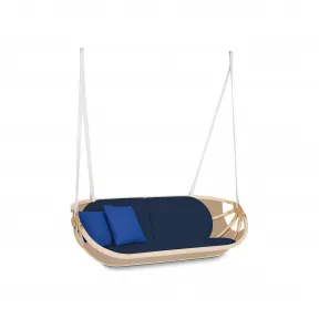 160 x 58 x 70 cm (长 x 高 x 宽) 来自Objets Nomades系列|重量:35千克|蓝色|牛皮,白蜡木,棉质帆布和镀金精钢|最大容量:200千克|其他羊毛枕垫|折叠放平,便于存放|每种颜色款式限量发售30件 在瑞士的比尔湖中,Atelier Oï工作室的三名合作伙伴在其乘坐的复古风可拆卸船上觅得了灵感,为Objets Nomades系列设计了这款船型吊床。此创意悬挂式沙发运用所有旅行箱制造商采用的材质,彰显了路易威登的精湛工艺:皮革衬垫、木质与面料“船体”,金属铰链……如同波浪般轻轻摇晃,是享受白日梦的摇篮。