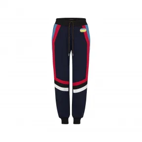 经典绵羊毛混纺慢跑裤汲取秀场元素,令醒目色彩自侧缝延伸至膝部,勾勒修长轮廓的同时唤醒机车风潮。渐变 LV 皮革贴饰与 Monogram 抽绳点睛细节。