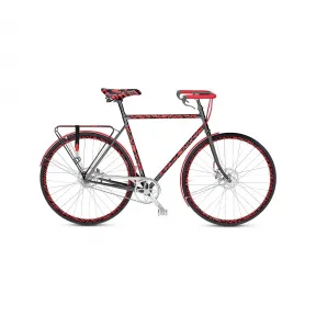 适合身高 180 厘米至 195 厘米人士使用帆布包覆车架,饰有 Monogram 元素金属件皮革座椅,饰有 Monogram 元素皮革包覆把手、闸线和车把内衬木质挡泥板木质轮辋,饰有 Monogram 元素双速曲轴前后机械盘式制动后灯位于座椅下方,前灯位于车架支架和车铃车把和座椅高度可调Closed Frame 大号自行车凝聚位于巴黎市中心的传奇 Maison Tamboite 工作室的纯熟手工艺。曲柄描摹 Monogram 花卉轮廓,脚踏板烙印 LV 字母。Urs Fischer 采用不同尺寸的 Monogram 印花点缀车身的不同位置。Red & Black LVxUF 自行车限量发售 20 辆。