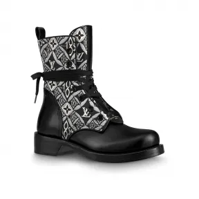 这款Metropolis平底军靴是Since 1854限量系列的款式之一,系列另备有皮具精品、配饰和时装。这款军靴时尚有型,以黑色小牛皮配搭提花纺织面料,并以由路易威登艺术总监Nicolas Ghesquière全新设计的复古风帆布为主打。系列以Since 1854命名,向品牌的立年份致敬。