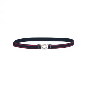 此款细长松紧腰带以棉质双色条纹设计为特色。时尚的金属带扣极具70年代复古风情,与前面小巧的金属Prada logo完美搭配。 此款细长松紧腰带以棉质双色条纹设计为特色。时尚的金属带扣极具70年代复古风情,与前面小巧的金属Prada logo完美搭配。