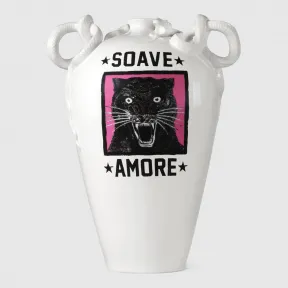 Richard Ginori瓷质花瓶,饰有黑豹图案,一种来自古驰花园的动物。以盘绕的灵蛇这一品牌经典元素平作为花瓶把手,设计别具特色,可与系列的其他作品互相配搭。查看隐藏 详细信息 饰黑豹图案白色Richard Ginori瓷质。 把手为灵蛇造型。 300毫米(宽)x 365毫米(高); 重量:2500克 。 意大利创作 。