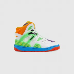 古驰/Gucci Gucci Basket幼儿高帮球鞋 彩色可持续材料Demetra 男童 682244-2SH80-9062 的视频