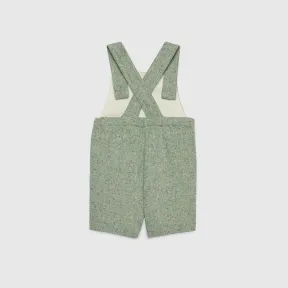 款式‎692739 XWAS7 3136Gucci Love Parade儿童系列巧妙地运用细腻配色与柔和色调来敍述故事。这款婴儿工人裤以薄荷绿色混纺羊毛制成。浅色调令作品的复古气息更为浓厚。作为品牌与古着童装收藏家Angela Lynne合作的别注作品之一,此作品的内侧饰有特别版刺绣标签。薄荷绿色羊毛混纺| 'Gucci'标签| 内侧缀以Angela Lynne刺绣标签——与Angela Lynne合作的成果| 棉布内里| 搭带| 裤头背面具有弹性| 钮扣扣合| 意大利制造|