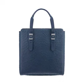 托特包“Bulgari Bvckle”丹宁蓝宝石色鸵鸟皮托特包,点缀镀深色钌金配饰。经典搭扣设计灵感源自搭配皮质表带的Bulgari腕表。一个拉链口袋,一个i-Pad专用袋配以皮带锁扣,两个敞口口袋和 一个 内置笔套。可调节、可脱卸手柄。另有其他颜色可选。中号。32.5 x 36 x 12.5 厘米 - 12.8 x 14.1 x 4.9 英寸