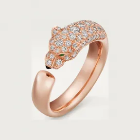 • 卡地亚/Cartier N4765700 - Panthère de Cartier卡地亚猎豹戒指 小号款 半铺镶钻石 18K玫瑰金 - 玫瑰金 缟玛瑙 祖母绿 钻石 N4765760
