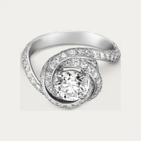 卡地亚/Cartier N4250400 - Trinity Ruban钻石戒指 镶嵌圆形明亮式切割钻石 铺镶钻石 铂金 - 铂金 钻石