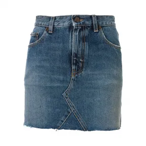 • 伊夫圣罗兰/Yves Saint laurent 女士 毛边牛仔迷你裙 602944Y807OBLUE 602944Y807OBLUE