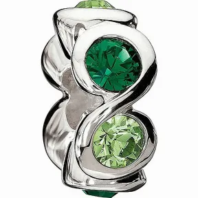 Pure, understated elegance. This sterling silver bead makes a wonderful addition to any bracelet, necklace or earring. It is available in five fashion colors: Black Diamond and clear crystal, Light Rose and Fuchsia, Light Amethyst and Amethyst, Montana and Aquamarine, Peridot and Emerald crystal. This product is part of the Swarovski Chamilia collection.