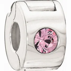 The sterling silver jeweled lock is a fashionable way to keep your beads secure. Available in Light Rose, Aquamarine, Amethyst and clear crystal, you can choose your favorite color. This product is part of the Swarovski Chamilia collection.