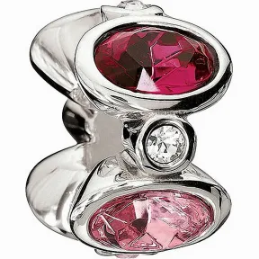 Simply stunning! This sterling silver bead will make a truly beautiful addition to any bracelet or necklace. It is available in five glorious color combinations: Black Diamond and clear crystal, Light Rose and Fuchsia, Light Amethyst and clear crystal, Aquamarine and Montana, Peridot and Emerald crystal. All designs feature clear crystal accents. This product is part of the Swarovski Chamilia collection.