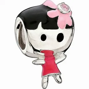 Sugar and spice and everything nice... This sweet little girl design in sterling silver is embellished with pink and black epoxy. A Light Rose crystal sparkles in the center of the flower worn in her hair. This product is part of the Swarovski Chamilia collection.