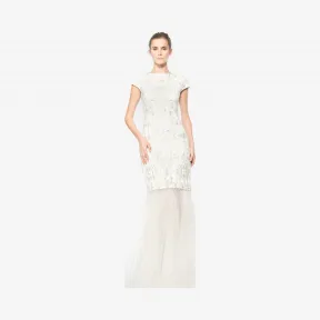 绣花蕾丝网纱可脱卸鱼尾晚礼服 APB2186LXH-IVORY 的视频