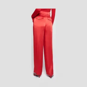 这款醒目的缎面大胆红色裤子为您的衣橱增添趣味。剪裁成高腰款式,两边饰有金色纽扣和色调条纹。 粘胶缎面|高腰腰|直腿|前部褶皱|纽扣式口袋|同色调织物侧板|材质:57%醋酸纤维43%粘胶纤维