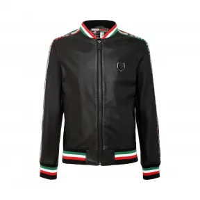 意大利国旗接管了该纳帕轰炸机袖子装饰的品牌字母。背面印有与标志相同颜色的标志性老虎划痕。橡胶贴片,老虎在左胸。拉链开合和两个开slit口袋。罗纹衣领,袖口和下摆采用标志性颜色的条纹制成。