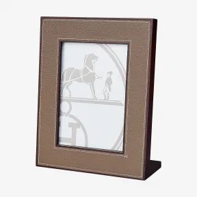 山羊皮及棕色实心梧桐木皮革相框。