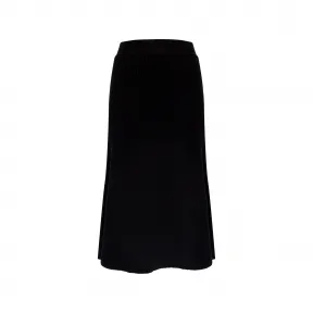 黑色羊毛罗纹半身裙,弹性腰边,喇叭设计。