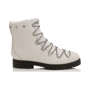 Jimmychoo/吉米周 白色粒面皮革作战靴,配衬羊毛衬里 DRAKEFLATAGI080009 的视频