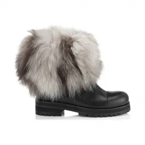 Jimmychoo/吉米周 黑色皮革和白色狐狸皮靴 DANAFLATLFX000050 的视频