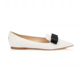 Jimmychoo/吉米周 白色闪亮皮革,配以蝴蝶结细节彩绘的Ministuds尖头平底鞋 GALAYLM080583 的视频