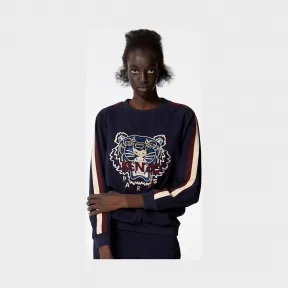 这款运动衫风格的上衣穿着时尚的运动服。我们喜欢条纹袖子与正面大老虎刺绣的对比。我们建议您搭配搭配慢跑裤搭配KENZO整体外观,甚至搭配一些踝靴为您的运​​动外观增添都市风情。绉纱上衣。正面绣有老虎。圆领。长袖,对比色条纹。罗纹衣领,袖口和腰部。