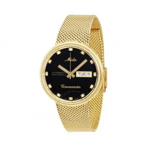 黄金 PVD ​​不锈钢表壳搭配黄金 PVD ​​不锈钢网状表链。 固定黄金 PVD ​​表圈。 黑色表盘,黄色金色指针和索引时标。 星期和日期显示在 3 点钟位置。 Mido Calibre ETA 2836-2 自动上链机芯,动力储存 42 小时。 耐刮擦的 hesalit 水晶。 坚固的底盖。 圆形表壳形状。 表壳尺寸 37 毫米。 表壳厚度 10.5 MM。 带宽 20 MM。 将卡扣折叠起来。 防水深度为 50 米/165 英尺。 函数日期日小时分秒。 指挥官 I 系列。 休闲手表风格。 美度指挥官 I 自动黄金 PVD ​​男女通用手表 M842932813。